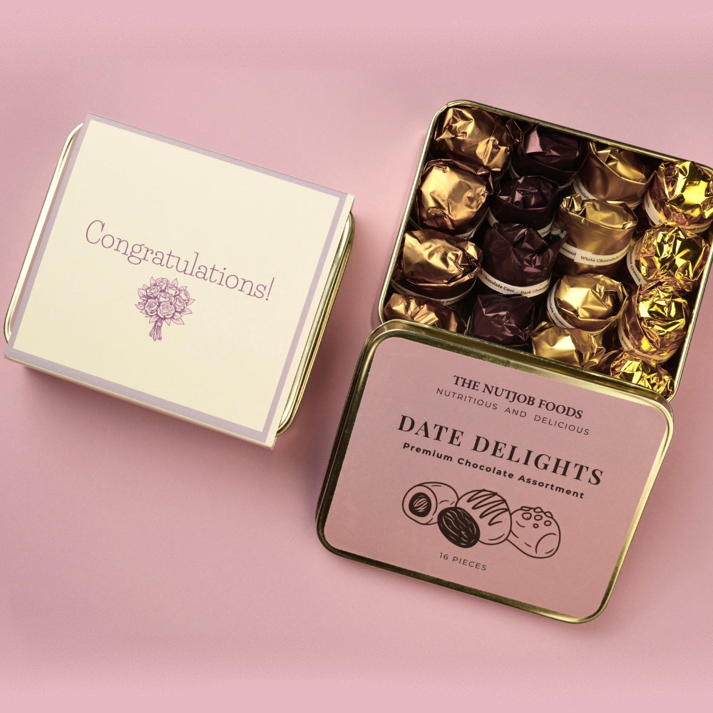 'Congratulations' Date Delights Premium Chocolate Gift Box, Assorted Dates Chocolates, 16 Pieces